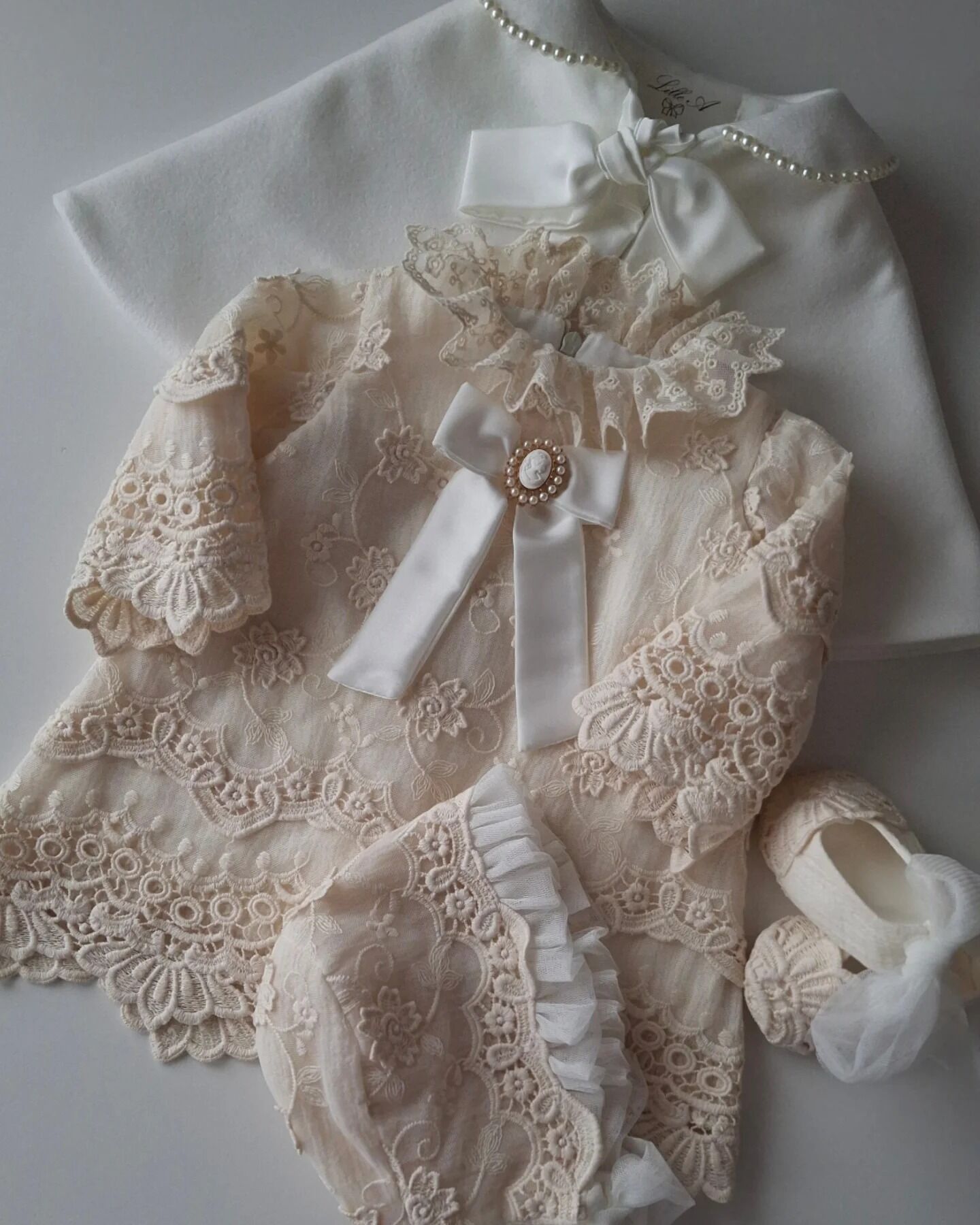 Rochita Adalline de inspiratie vintage,o piesa perfecta pentru evenimente speciale.realiza din muselina moale,broerie bumbac ,la interior captusala moale bumbac.Se pot realiza papucei 55 lei,bonetica din acceasi colectie 69 lei sau bentita 39 lei.